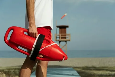 The waterfall eye of the lifeguard on his town. Ready to accept any challenge that the sea has to offer.